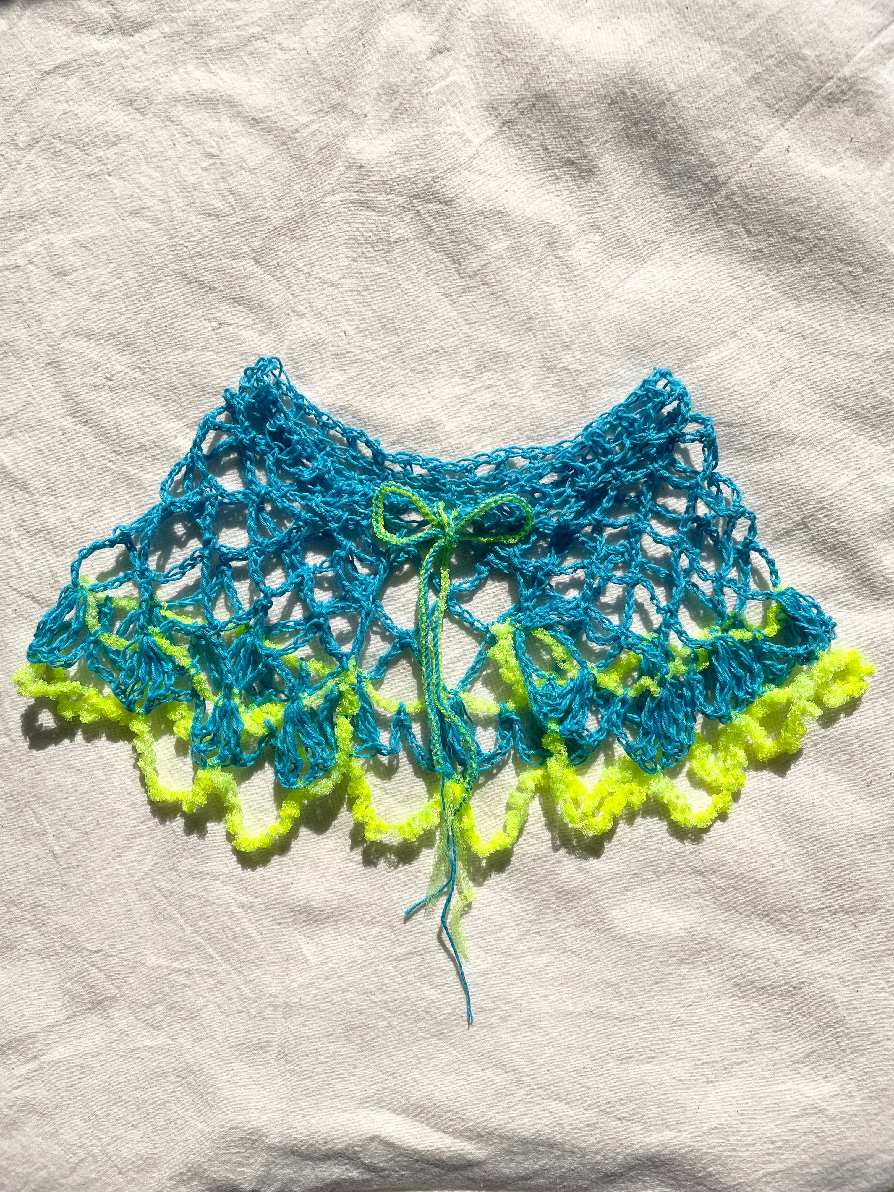 ネオンカラーのつけ襟を編みました◎